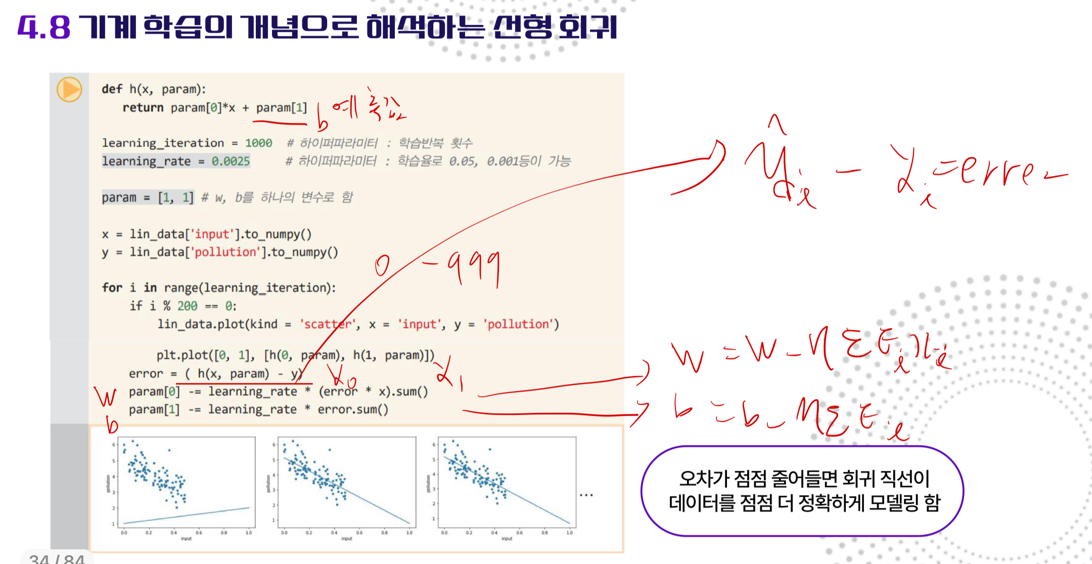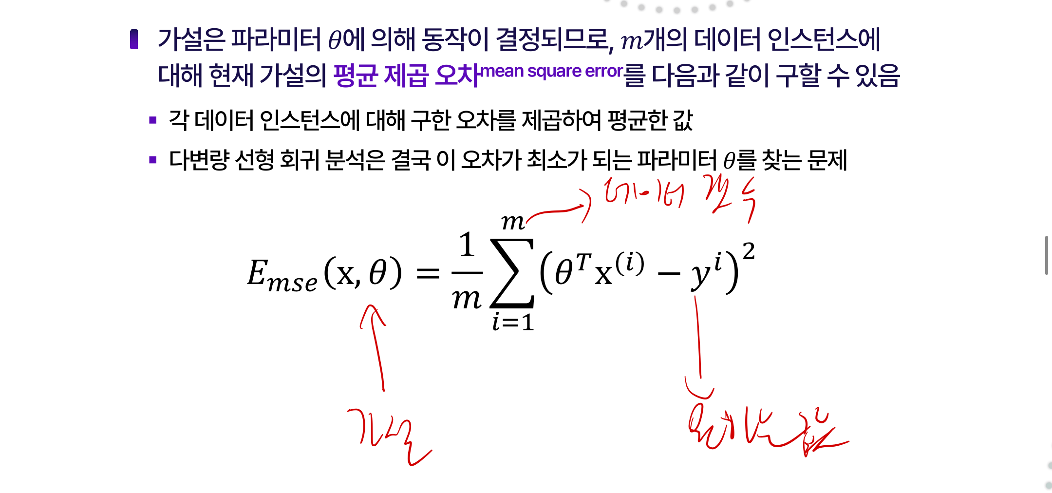 선형회귀 : x에 대응되는 실수 y들이 주어지고 추정치 f(x)가 가진 오차를 측정