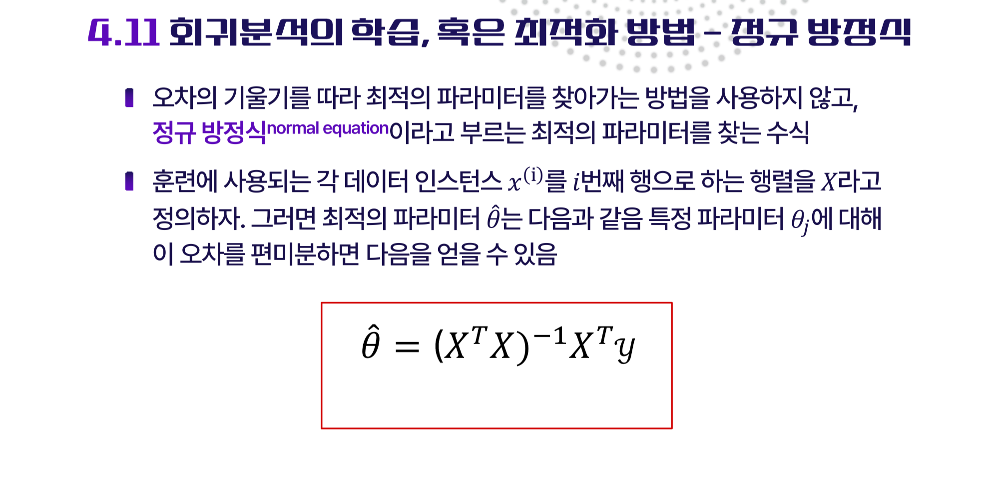 정규 방정식을 푸는 것은 넘파이의 선형대수 서브 모듈인 linalg를 이용