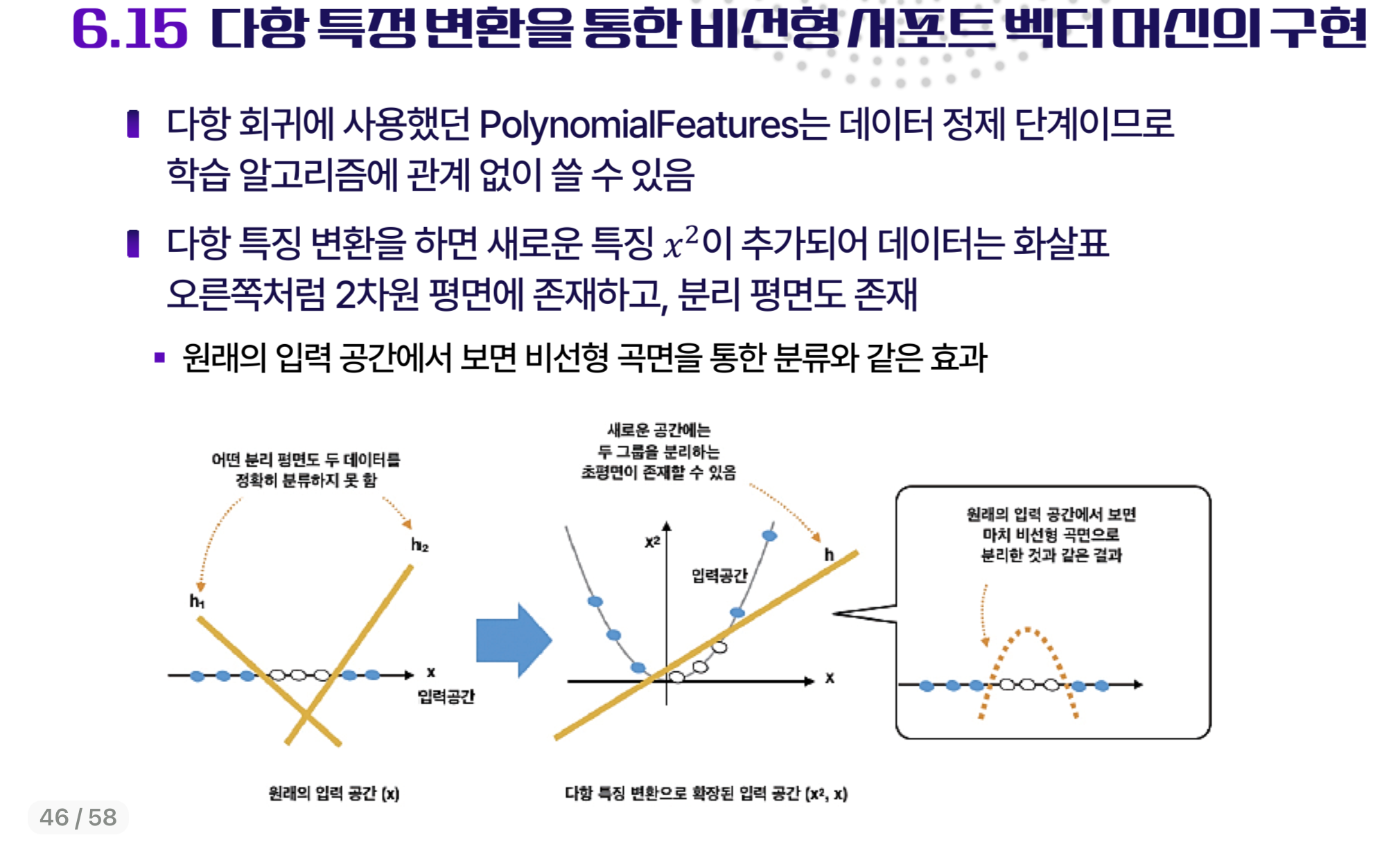 다항 특징 변환을 사용할 경우 차수가 높아지면 입력되는 특징 벡터의 차원이 급격히 높아지는 문제
