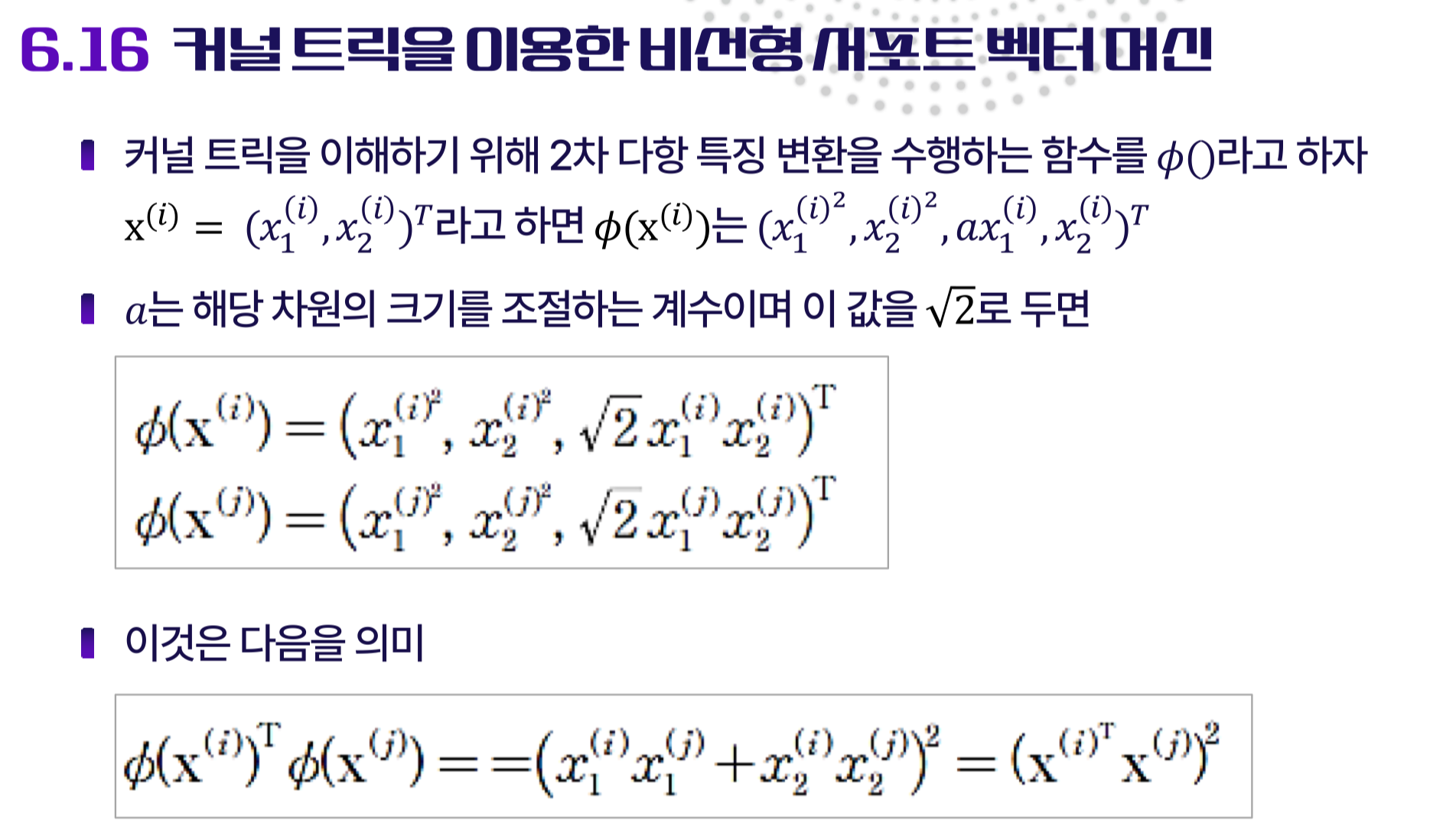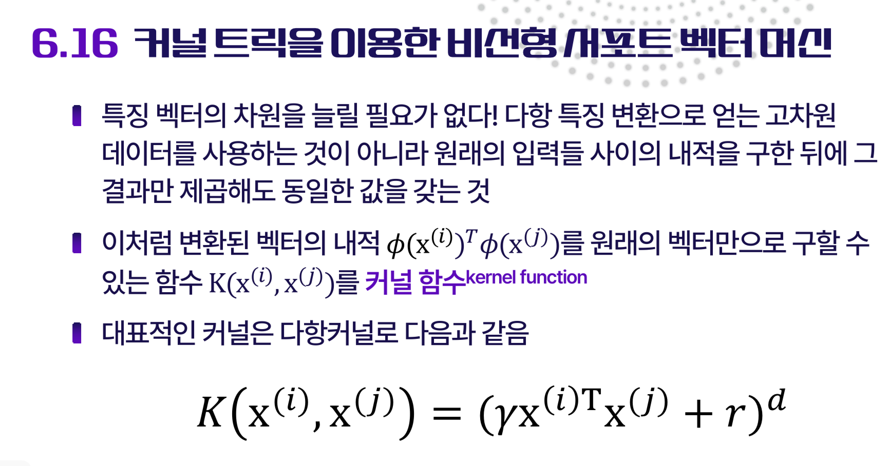 하지만 쌍대 문제에서는 특징 데이터의 차원이 증가해도 내적 계산 시간이 증가하지 않도록 하는 커널 트릭이 존재