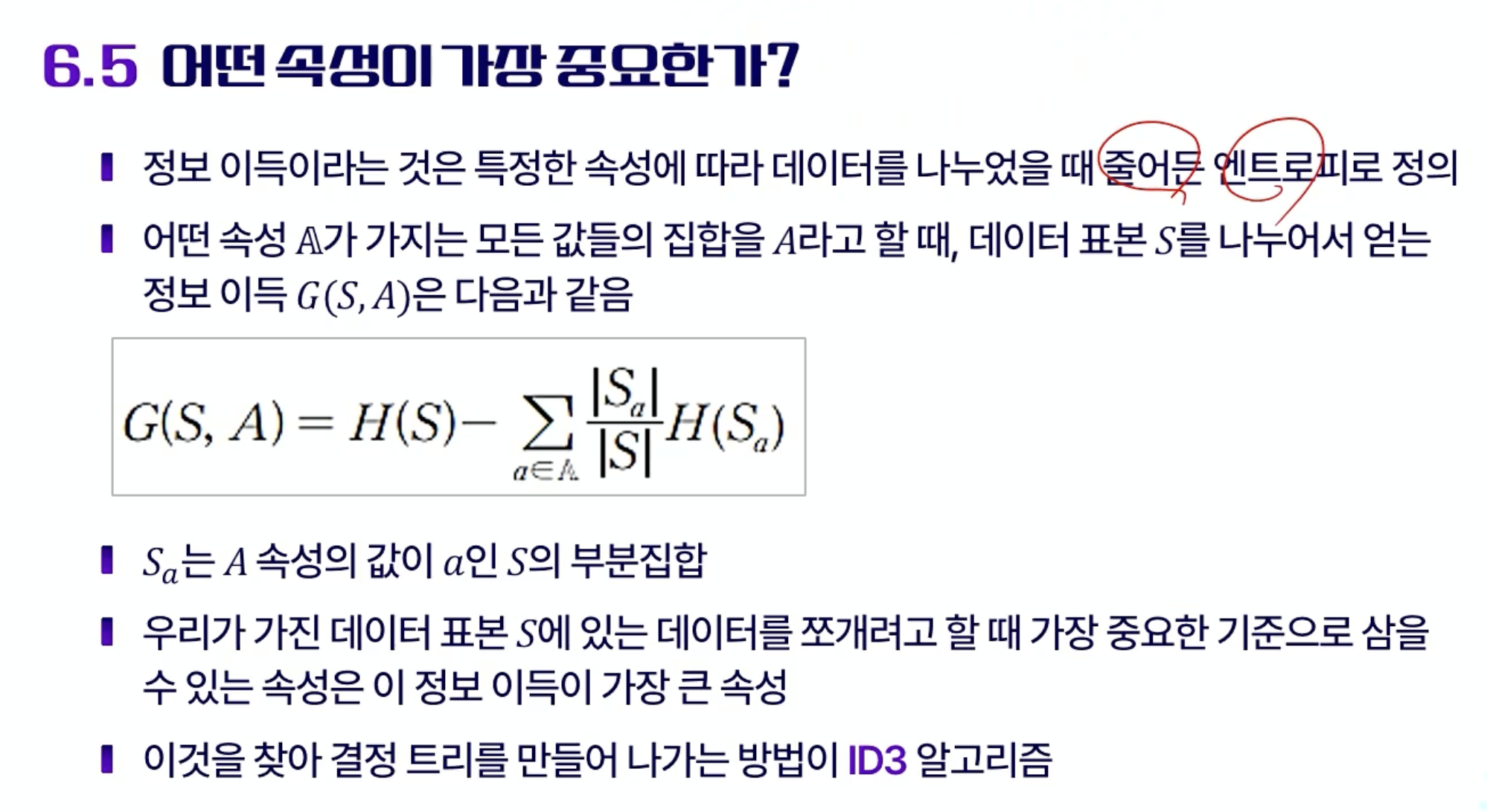 속성중에서 어떤것이 가장 중요한 것인지 판단하기 위해 정보이득이라는 개념을 사용