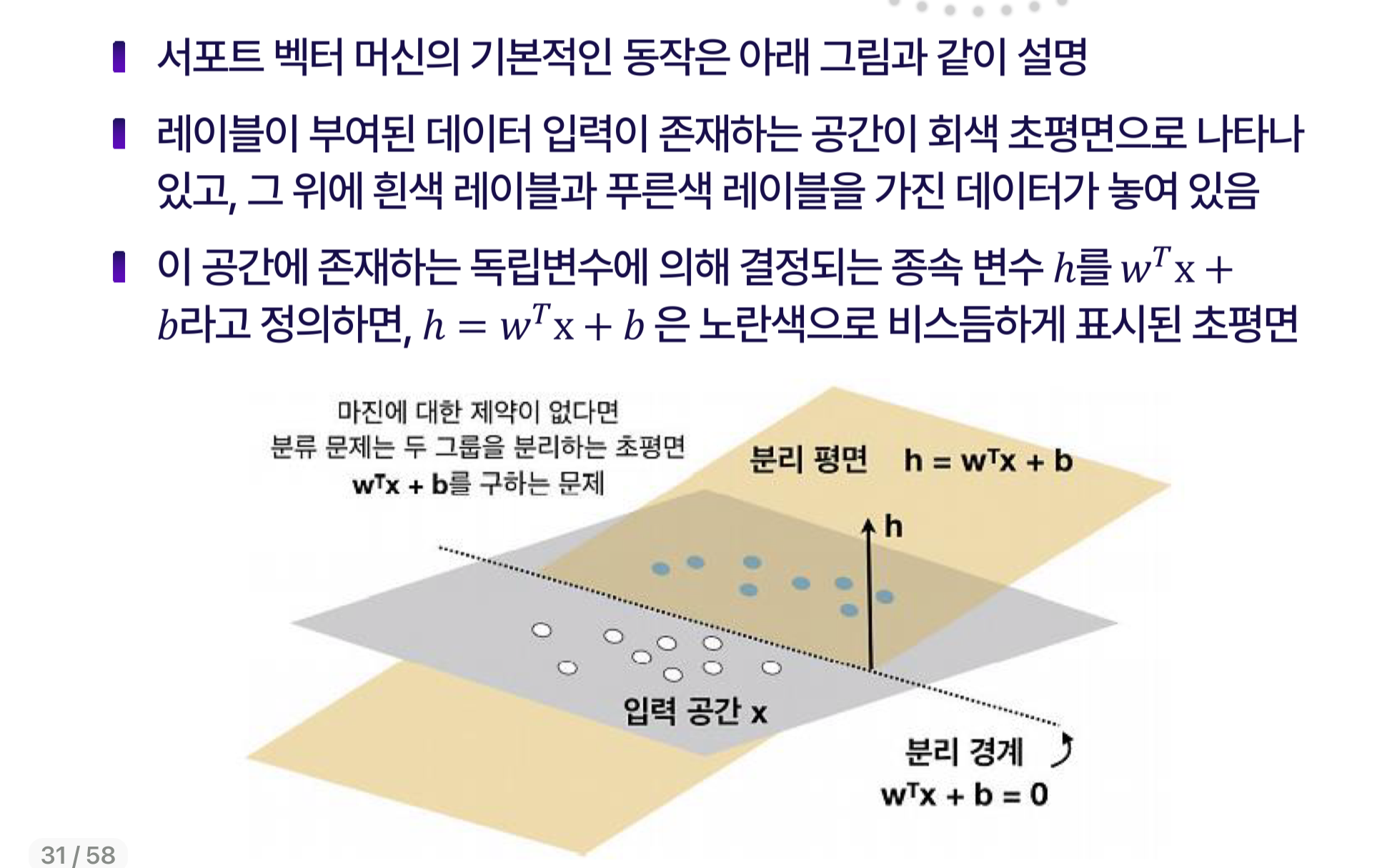 서포트벡터머신은 흰색 레이블의 데이터들은 h가 음수, 푸른색 레이블 데이터들은 h가 양수가 되게 하는 w와 b를 찾으면 됨