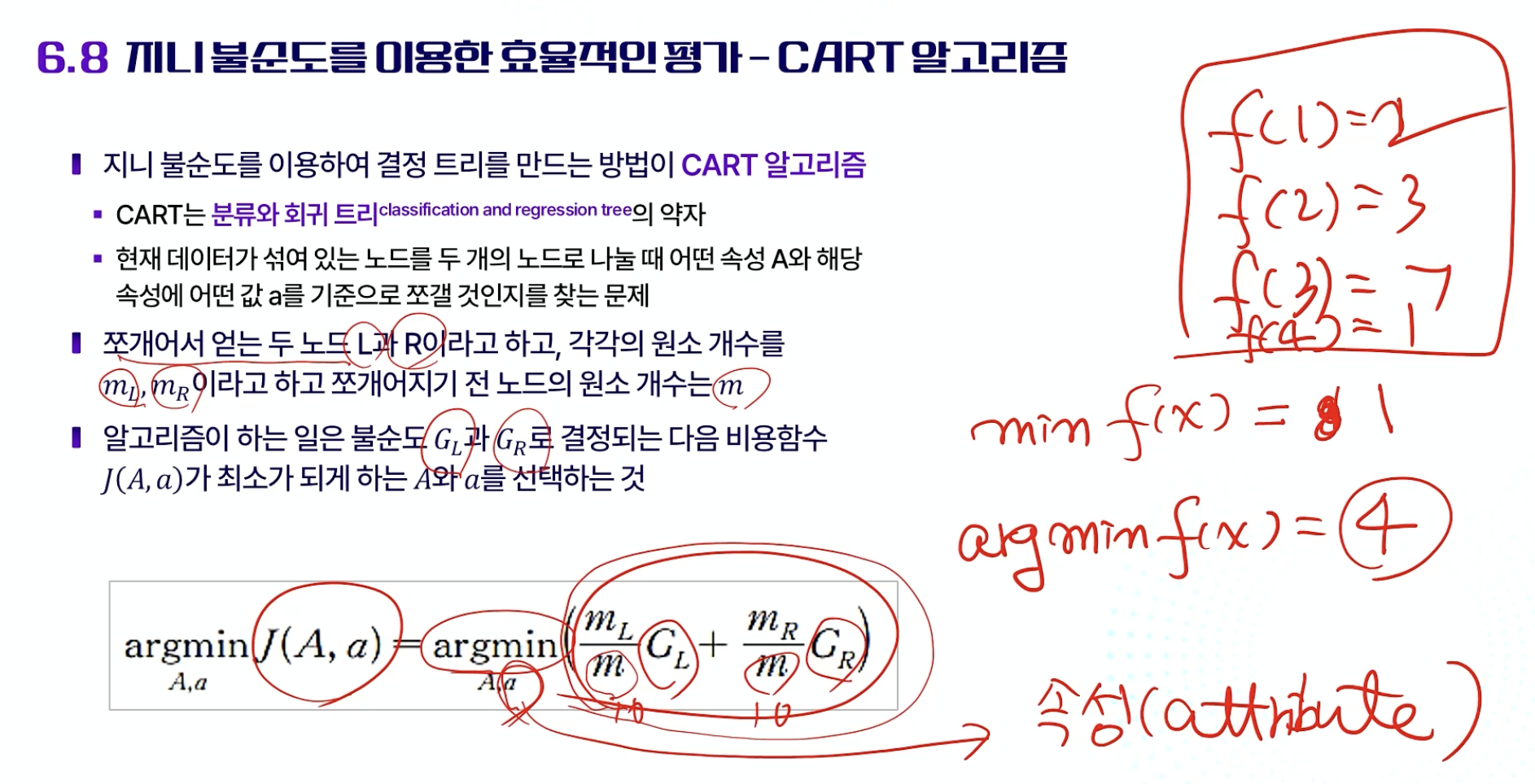 ID3는 정보이득 CART알고리즘은 불순도 개념