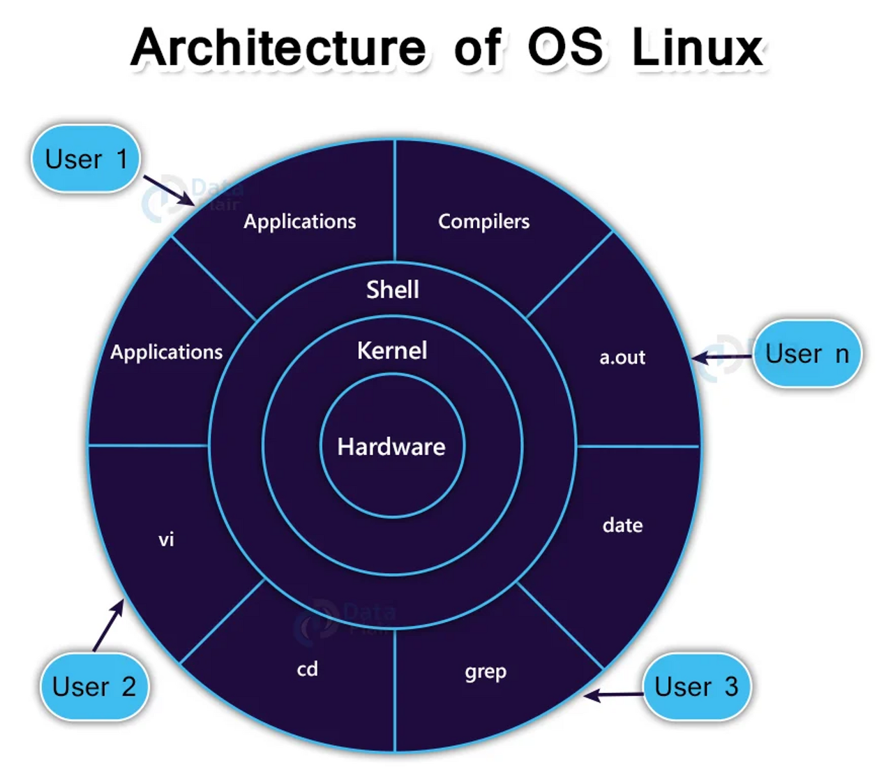 리눅스는 다음과같이 커널과 셀을 분리해 놓았습니다.