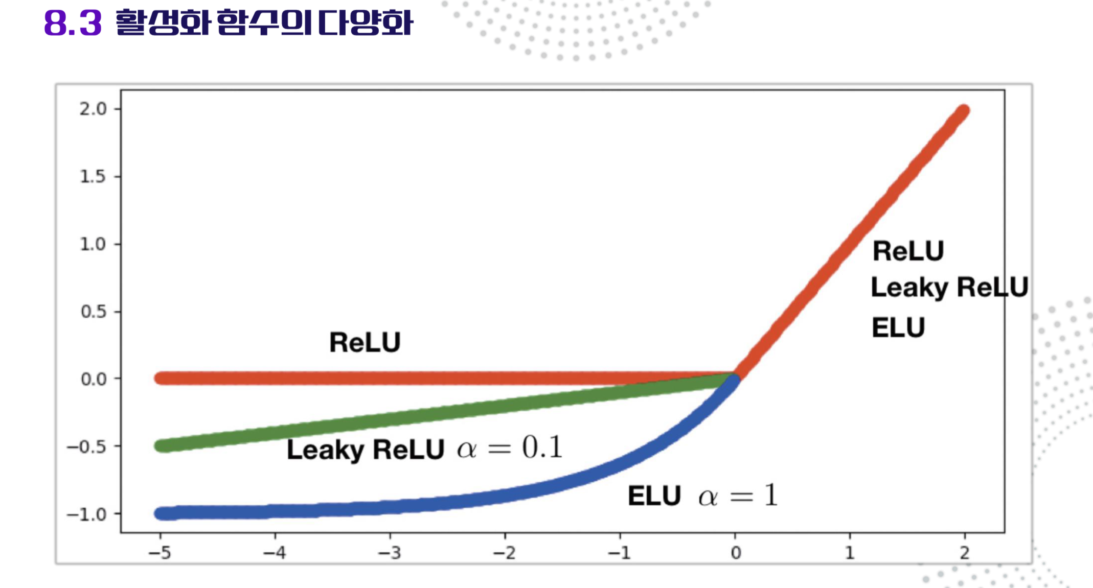 입력이 음수인 곳에서 0을 출력하지 않고 1보다 작은 기울기로 약간의 신호를 내어 보냄