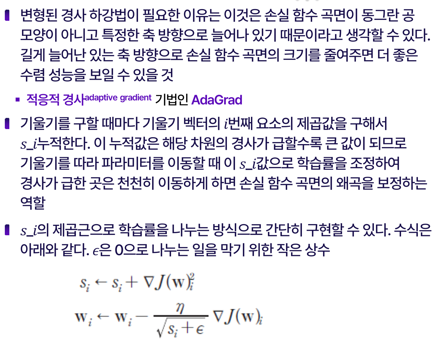 문제를 개선하고 학습률을 크게 하면서 큰 걸음으로 최적해에 도달 할 수 있도록 하는 다양한 변형 기법들이 등장
