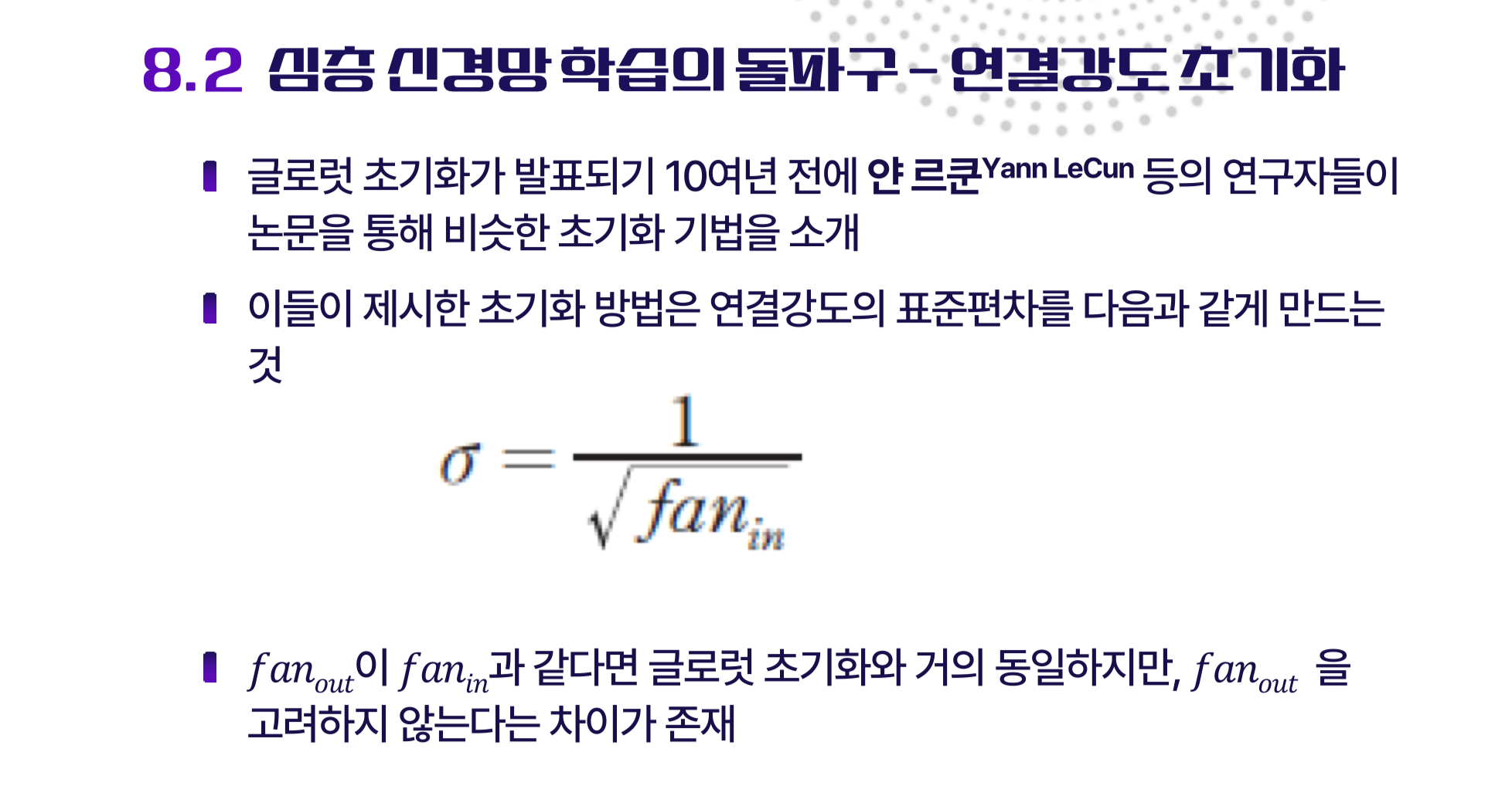 은닉층을 매우 많이 쌓은 신경망에서 ReLU활성화를 사용할 때 글로럿 초기화보다 빠르게 수렴