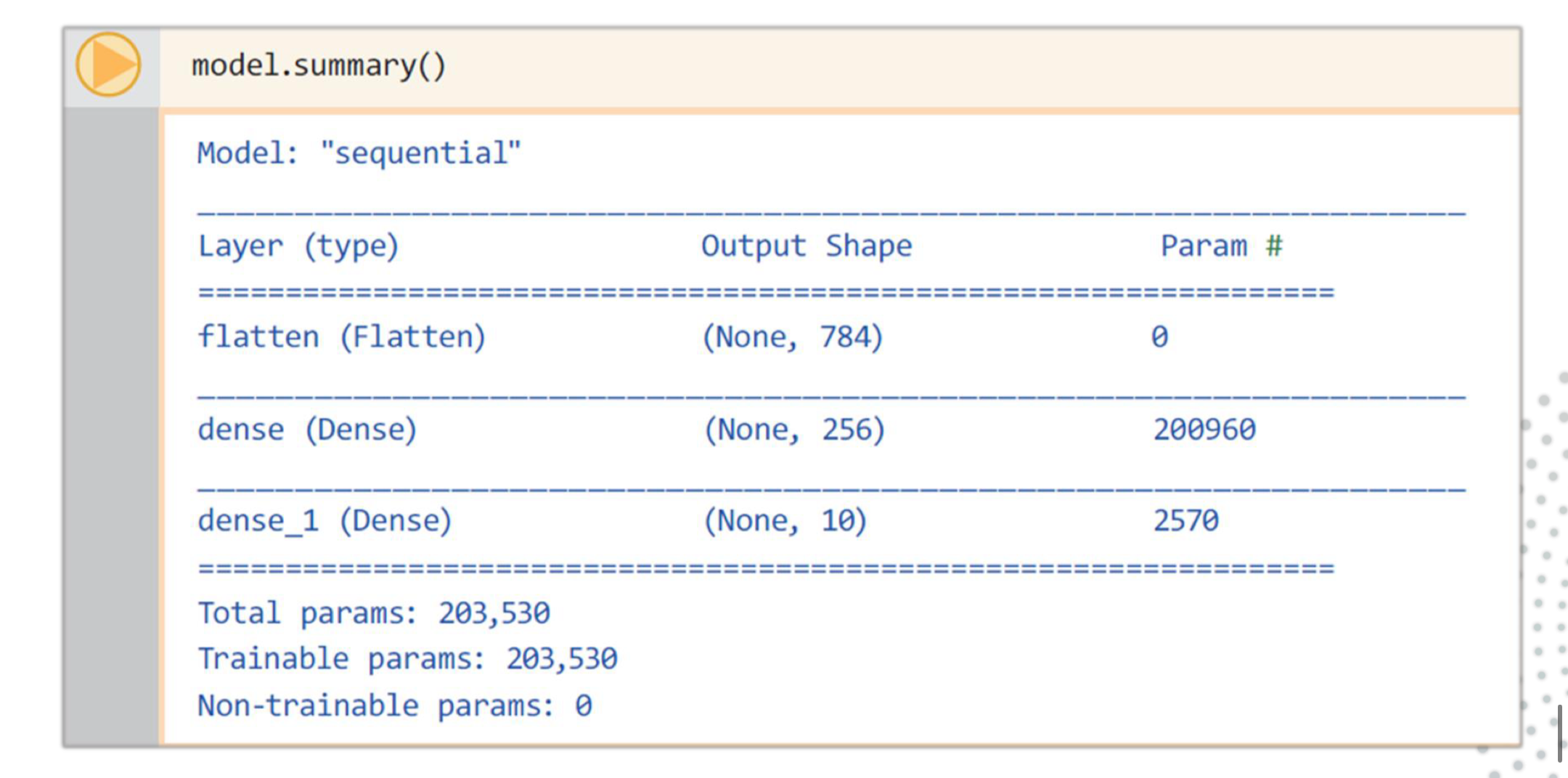신경망모델이 어떤형태, 몇개의 파라미터를 훈련시켜서 만든 모델인가를 model.summary를 통해 확인