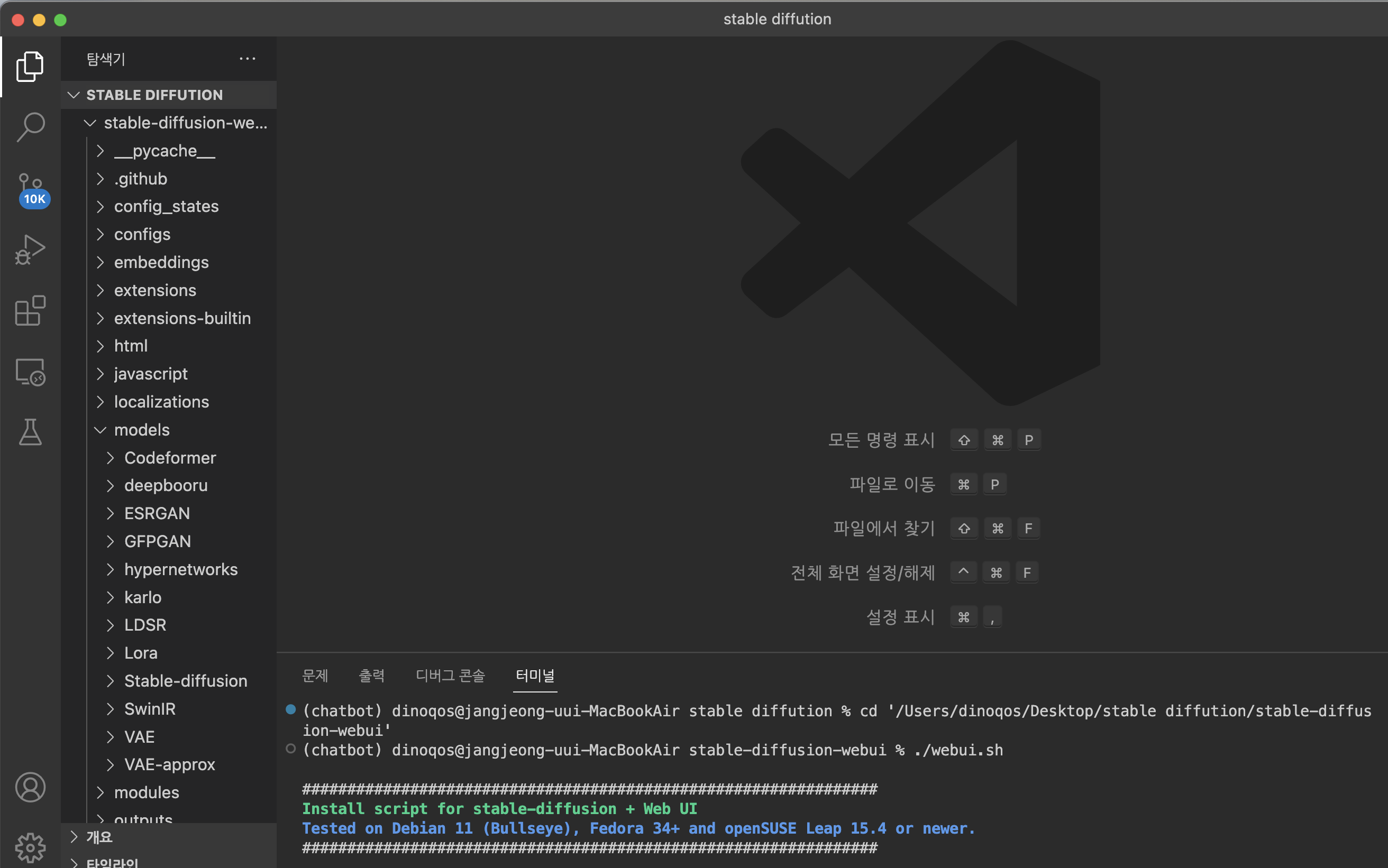 stable-diffusion-webui폴더로 이동 후 아래의 명령어를 실행