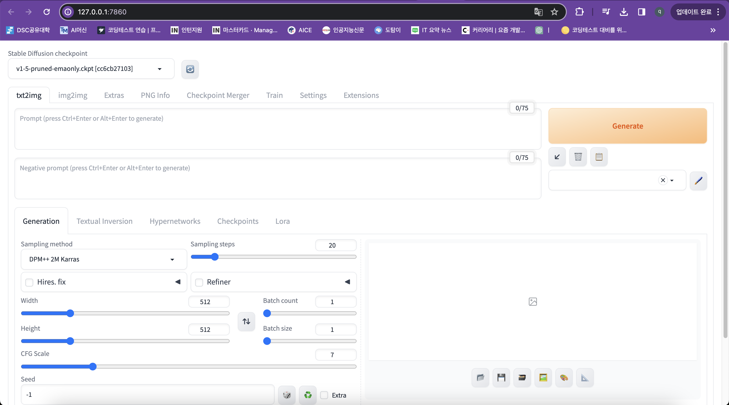 stable diffusion이 재밌어보여서 한번 혼자 해보기로 결심..!