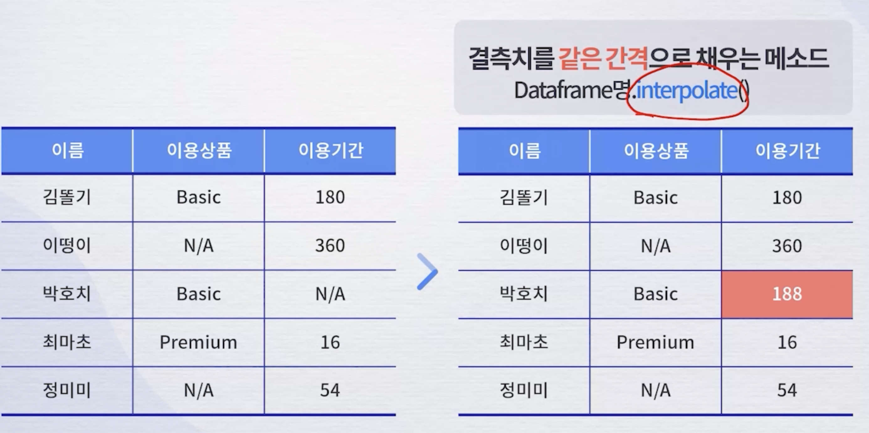 결측치를 같은 간격으로
